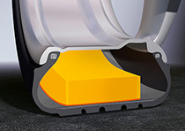 Новый направленный рисунок протектора c оптимальным соотношением резины и свободного места для обеспечения эффективного водоотведения и защиты от аквапланирования. Это дает лучшее сцепление на мокром покрытии и снежной каше, предотвращая аквапланирование. В сочетании с большим количеством гибких соединительных элементов и смыкающимся ламелям эти свойства повышают точность рулевого управления в экстремальных условиях на заснеженных, мокрых и сухих дорогах.